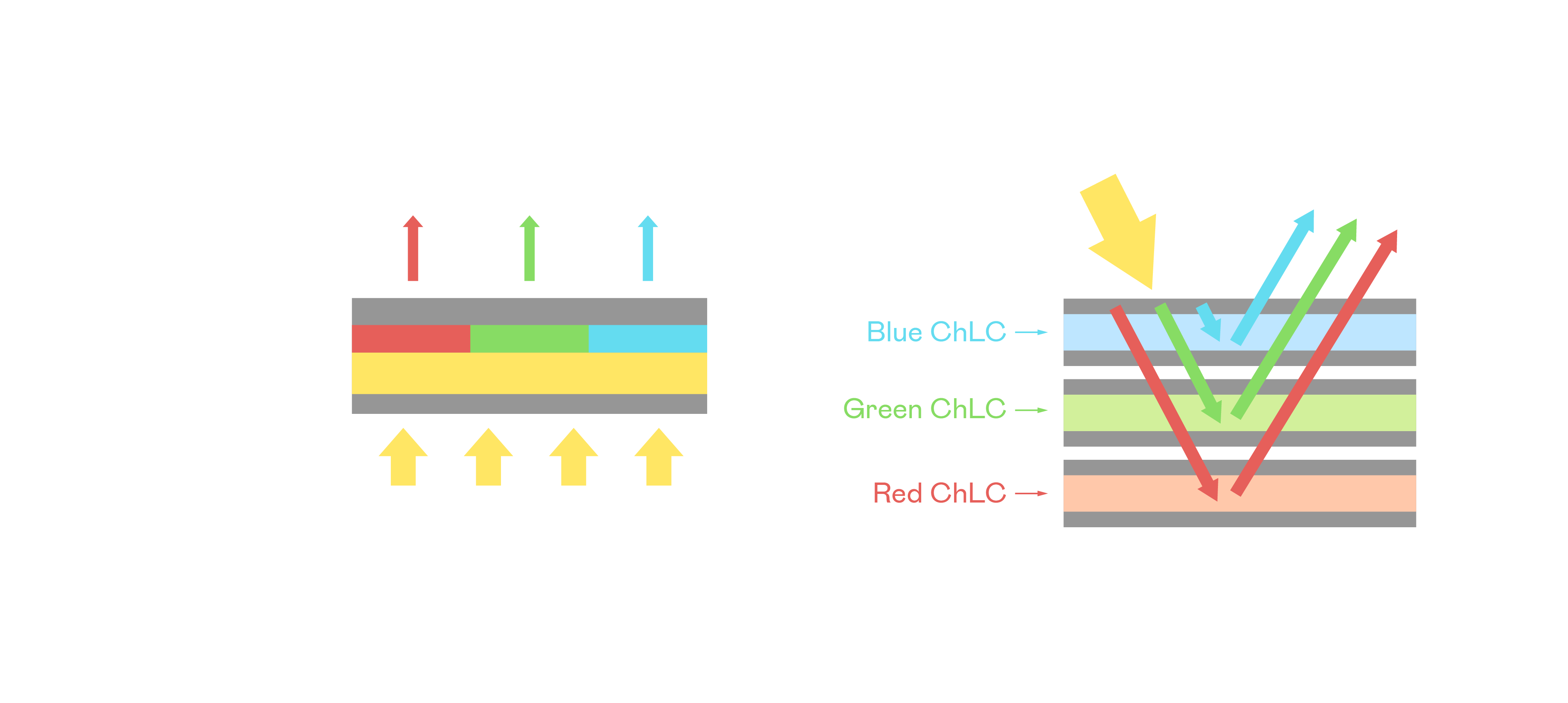 EVO视讯膽固醇液晶顯示器是由紅、綠、藍三層膽固醇液晶面板堆疊而成,並採用無彩色濾光片設計,減少環境光在反射過程中的損耗。